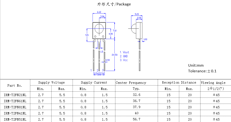 紅外接收特征:紅外輸出功率高,響應速度快。應用:高速紅外通信,光學開關,光電傳感器,攝像頭,煙霧傳感器